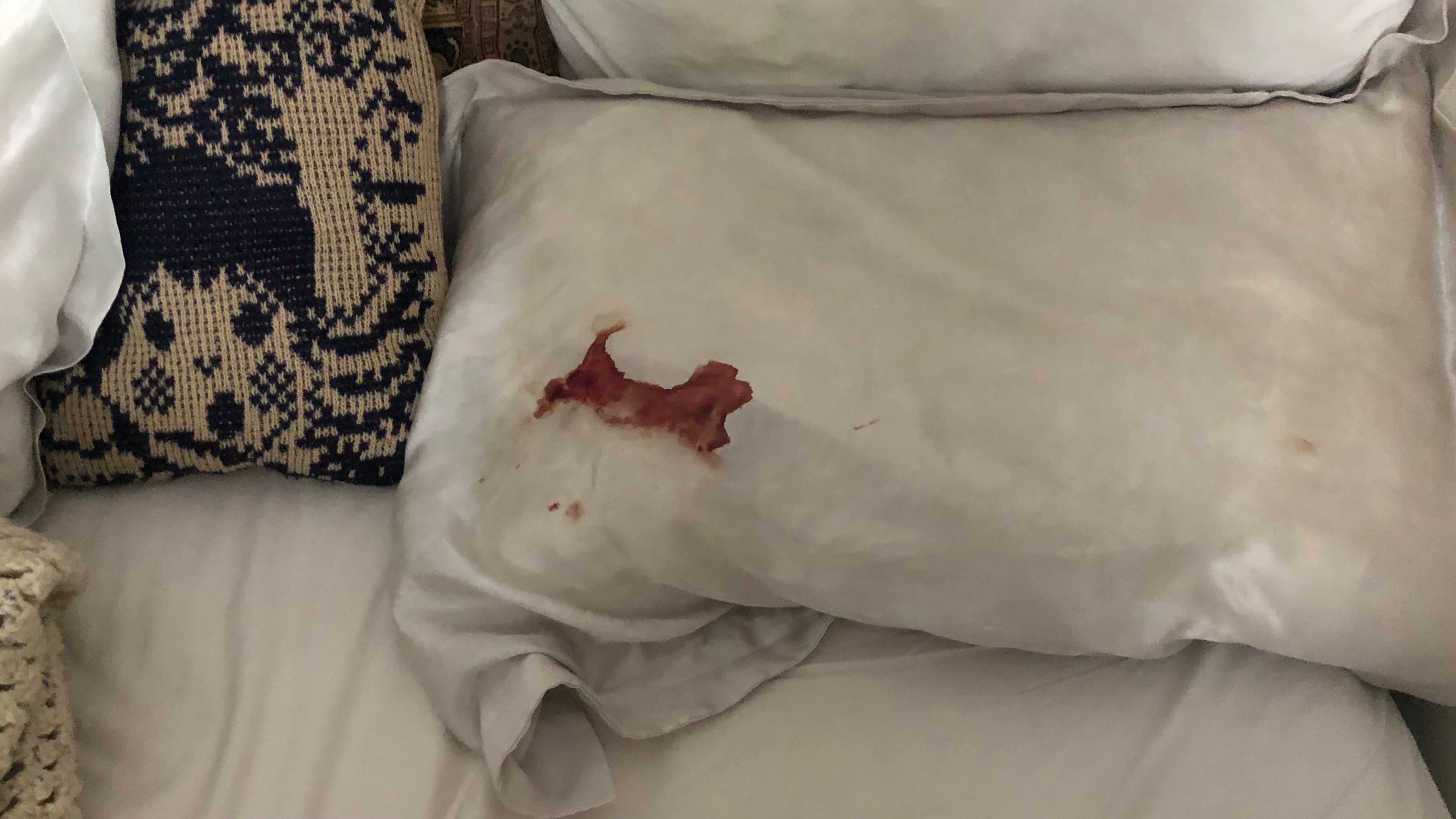 I never explained what my memory had hidden from me. The morning I woke up after having arrived home, my first sleep back in my bed, my pillow was covered in blood. Somebody told me later that it looked to be in the shape of a dog. I see the resemblance. Some small terrier or a spaniel with short legs. I examine the crime scene. My box of tissues toppled over. A tissue full of blood on my desk, and another thrown on the floor in between my house slippers. The most frightening thing is that I never forget things like these. Normally I am woken by a choking of blood in the back of my throat, or the quick dribbling of warm blood out of one or both nostrils. I usually always make it in time. And when I don’t, the toilet bleach comes in handy. When I got out of bed, I saw a river of dried blood that had cascaded and hardened down from my nose into my ear. The place where tears seem to pool when you cry on your back. I come to the conclusion that, though a chronic light sleeper afflicted with a persistent hyper vigilance, the exhaustion significantly outweighed any discomfort, and ultimately, fatigue won over. But the memory loss ? It scares me stiff. Can fatigue efface a memory ?